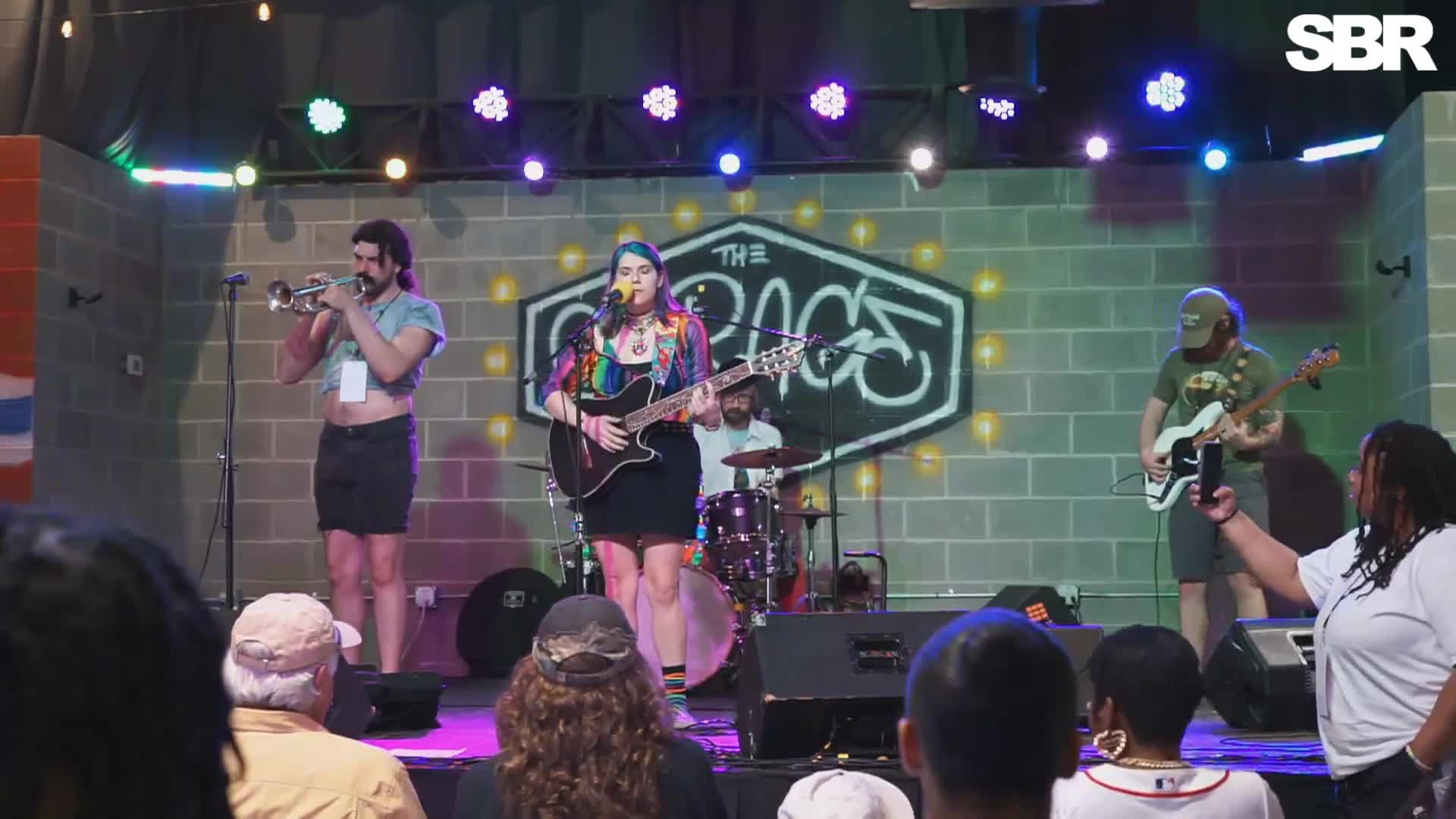 Throughout the performance, Po interacts with the crowd, offering QR code stickers for fans to find their music online and incorporating a Rubik's cube party trick (25:08).